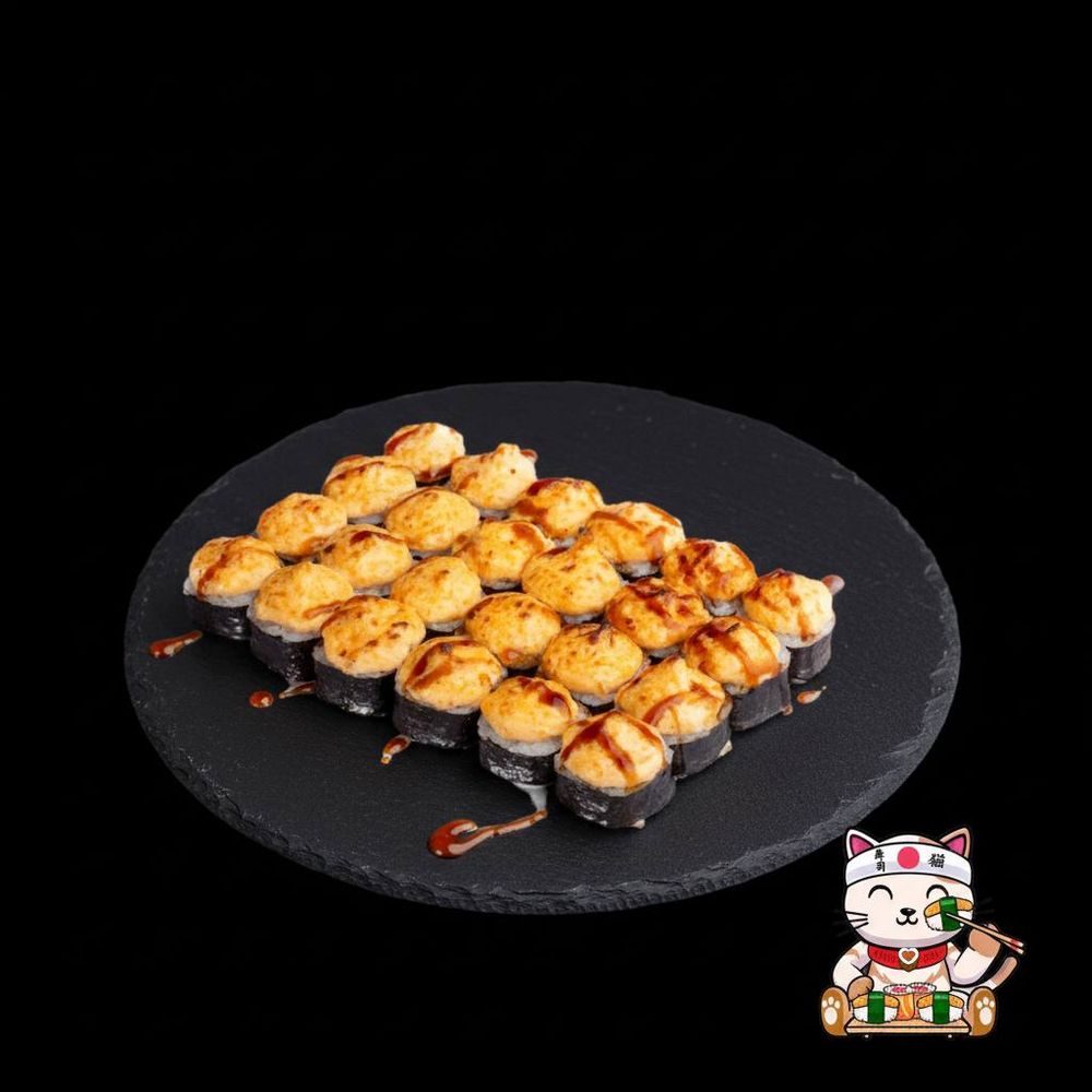 Запеченный Маки с Лососем Запеченный Маки с Креветкой Запеченный Маки с Мидиями 1 порции Васаби, 1 порции Имбирь, 1 порции Соевый соус