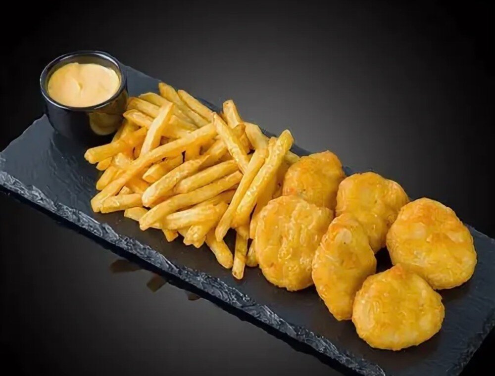 Наггетс 6 шт, картофель фри, спайси соус