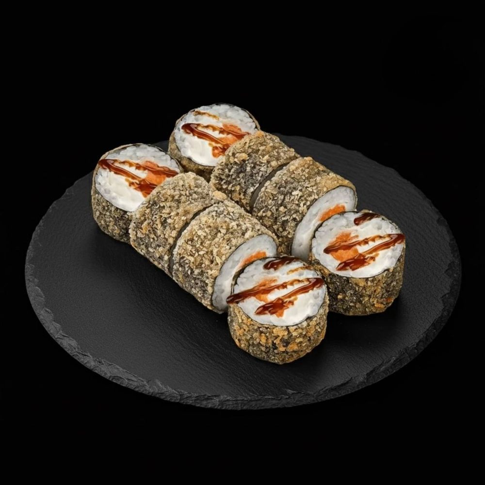 Нори, рис, сыр сливочный, лосось, кляр, сухари панко, соус унаги
