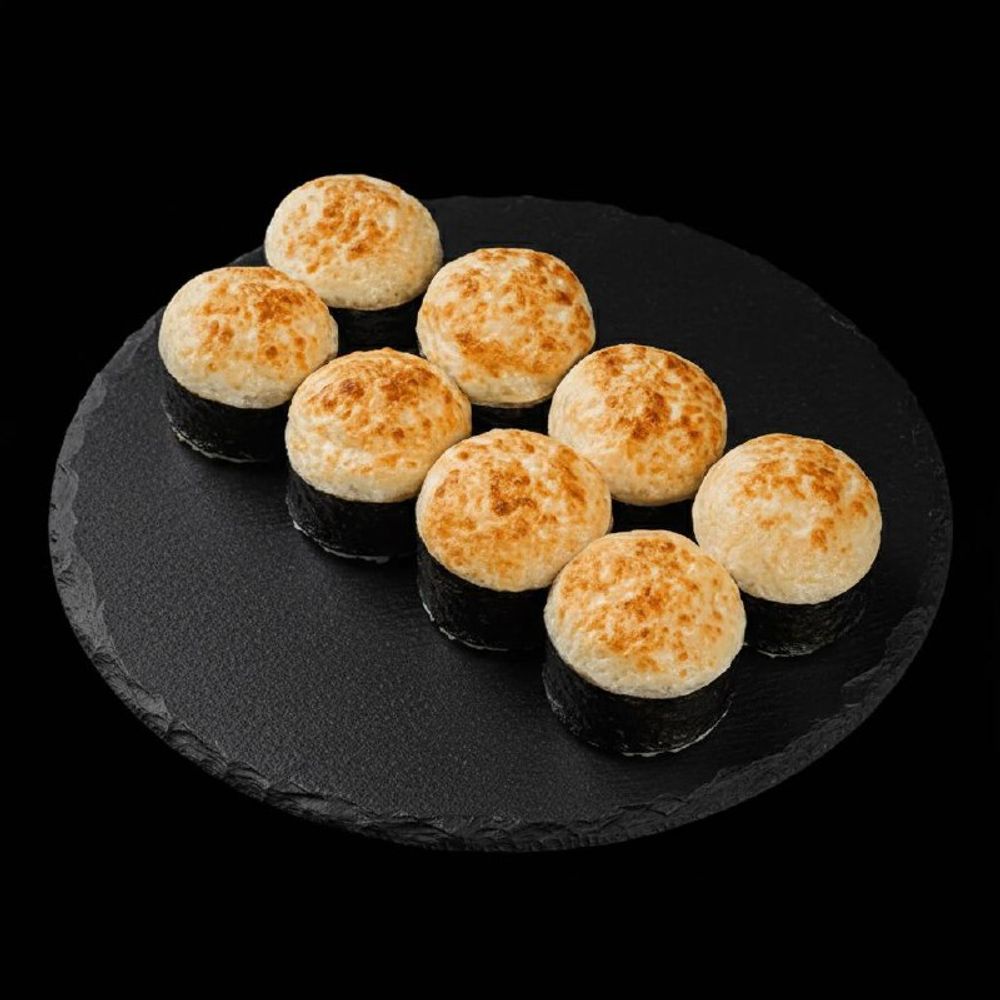 Нори, рис, сыр сливочный, курица запеченная, омлет томаго, соус воздушный