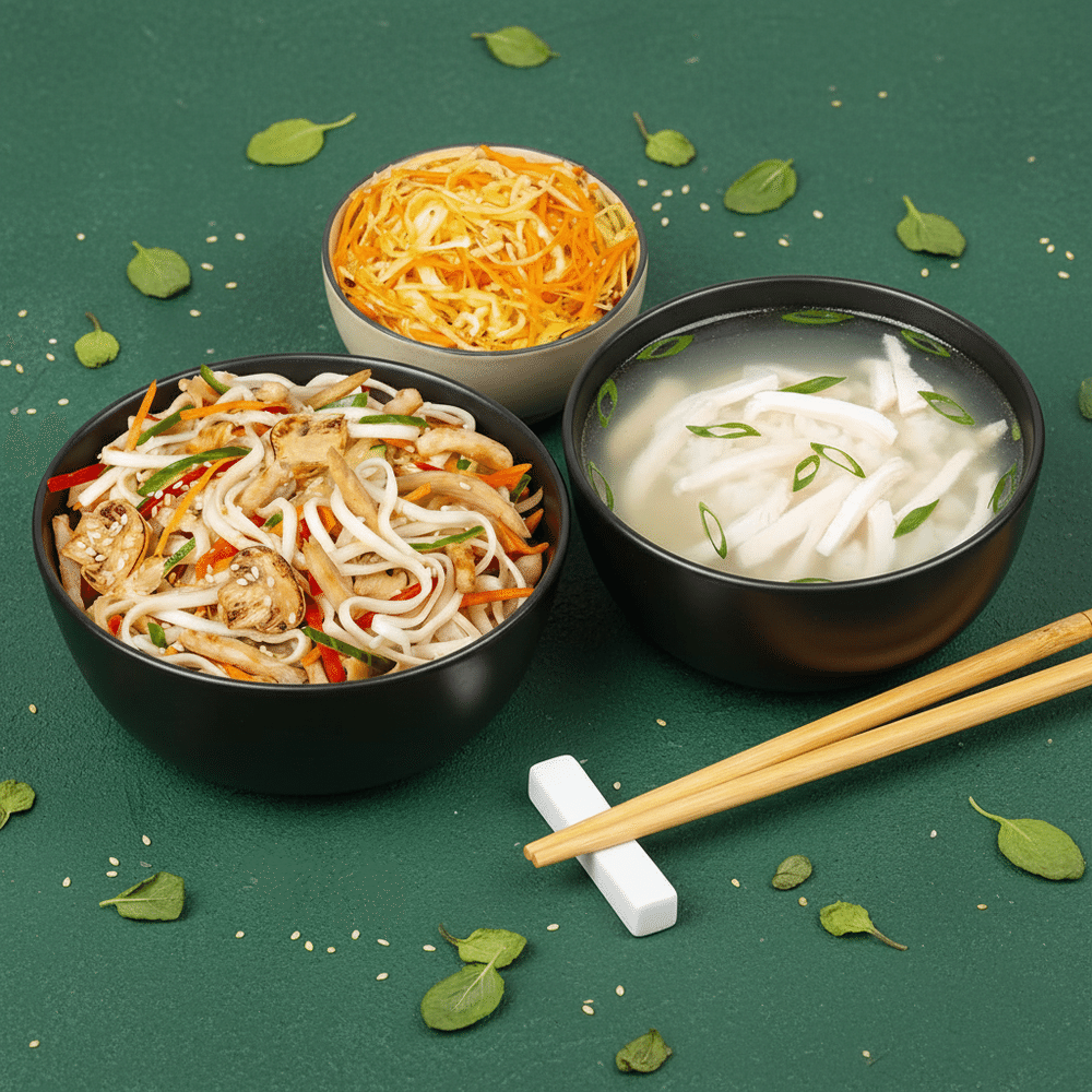 Салат витаминный, Вок классический с курицей под соусом терияки, Суп куринный