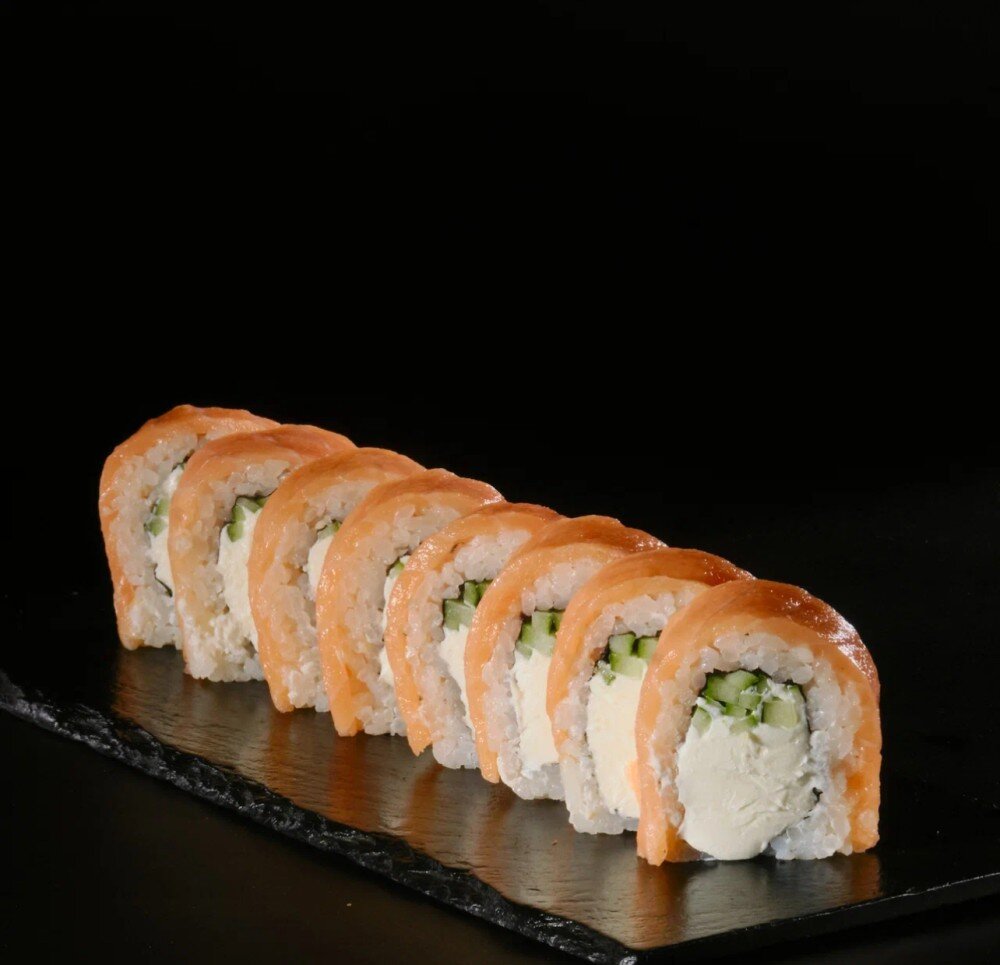 Свежий лосось, рис, сливочный сыр, огурец, нори