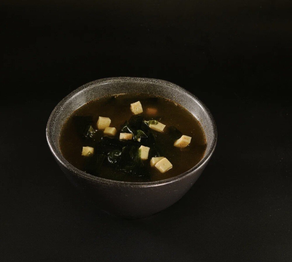 Бульон Мисо, сыр Тофу, шампиньоны, вакаме